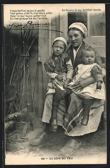 AK La Mére avec les enfants au coin du feu, Types du Centre