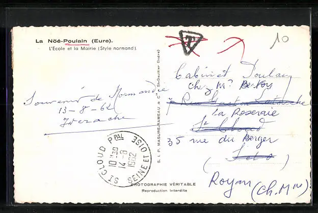AK La Nöe-Poulain, l'Ecole et la Mairie