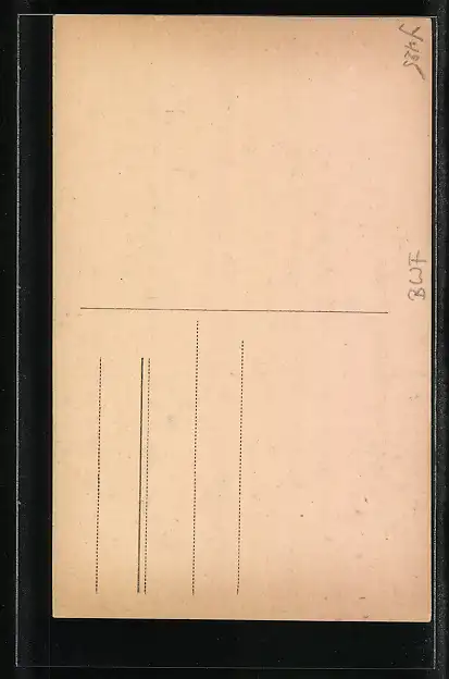 Personenbezogene Daten auf der Rückseite der Karte wurden durch blauen Textmarker unkenntlich gemacht. Die blauen Stellen sind auf die Vorderseite durchgeweicht und wirken sich negativ auf das Postkartenfoto aus
