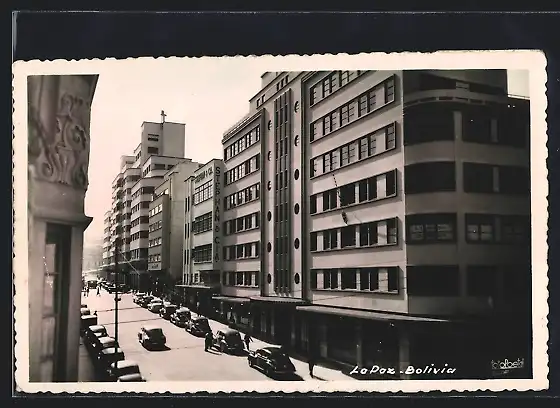 AK La Paz, Strassenpartie mit Geschäftshaus Stephan & Cia.
