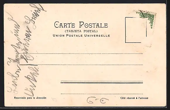 alte Ansichtskarte, gelaufen, Briefmarke entfernt, rückseitig Oberflächenschaden, minimaler Einriss re. unten, guter Zustand