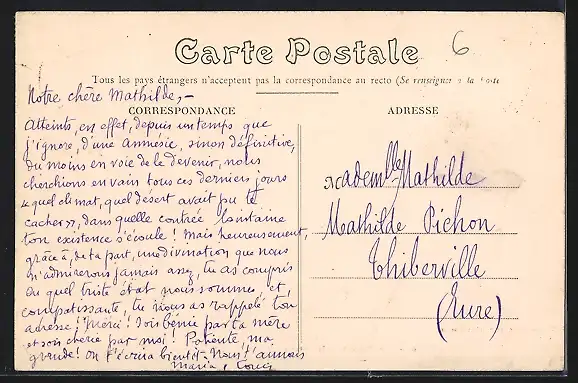 Personenbezogene Daten auf der Rückseite der Karte wurden durch blauen Textmarker unkenntlich gemacht. Die blauen Stellen sind auf die Vorderseite durchgeweicht und wirken sich negativ auf das Postkartenfoto aus