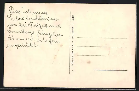 Personenbezogene Daten auf der Rückseite der Karte wurden durch blauen Textmarker unkenntlich gemacht. Die blauen Stellen sind auf die Vorderseite durchgeweicht und wirken sich negativ auf das Postkartenfoto aus