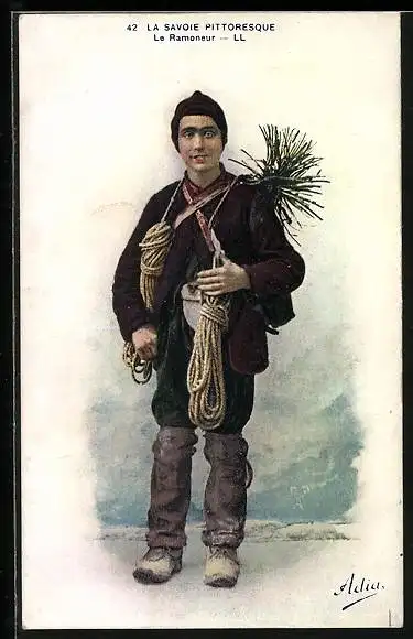 AK La Savoie Pittoresque, Le Ramoneur, Schornsteinfeger in voller Montur