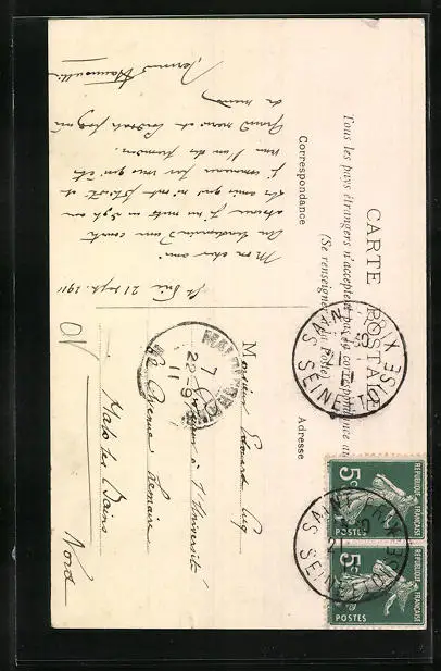 gelaufen 1911, Kleine Einrisse oben li. und unten re., Eckknick oben re., guter Zustand