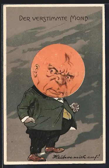 AK La pleine lune, Karikatur Mann mit Mond als Kopf