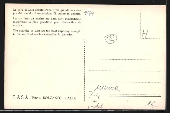 AK Laas im Vintschgau, Arbeiter im Marmor-Steinbruch