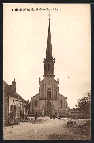 AK Labergement-lès-Seurre, l`Église avec des passants devant