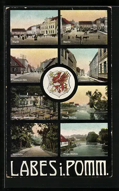 AK Labes i. Pomm., Hainholz-Restaurant, Markt, Chaussee-Str., Rega-Mühle