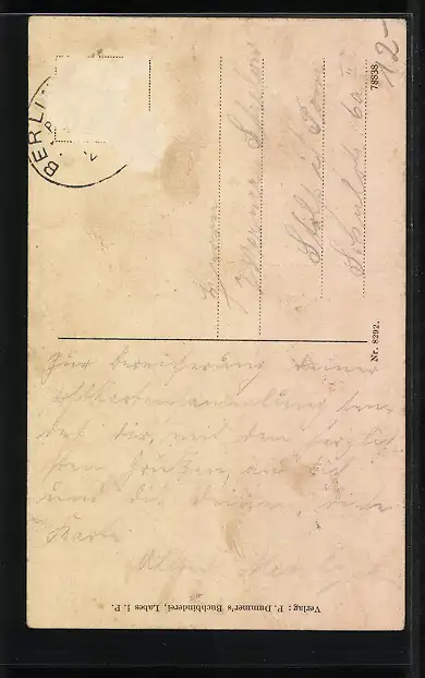 alte Ansichtskarte, gelaufen, Briefmarke entfernt, rückseitig Oberflächenschaden, guter Zustand