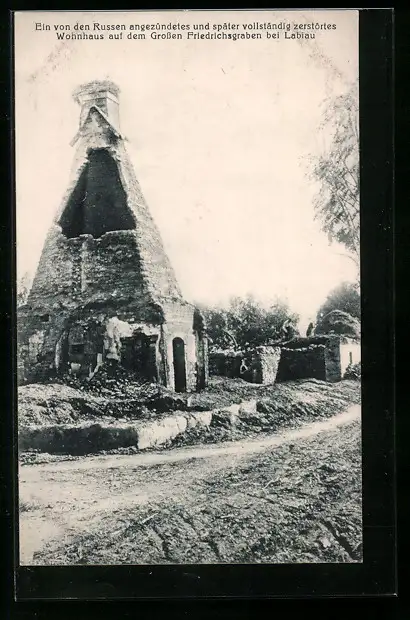 AK Labiau, Auf dem Grossen Friedrichsgraben zerstörte Gebäude