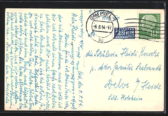 alte Ansichtskarte, gelaufen 1954, Stempelbugspur li. oben, guter Zustand