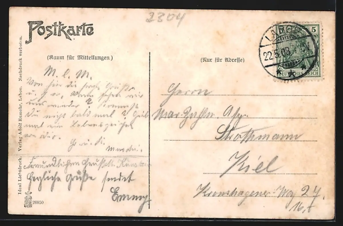 alte Ansichtskarte, gelaufen 1908, guter Zustand