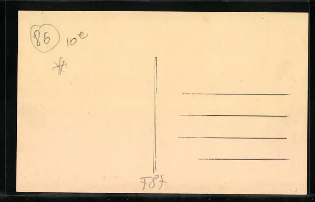 Personenbezogene Daten auf der Rückseite der Karte wurden durch blauen Textmarker unkenntlich gemacht. Die blauen Stellen sind auf die Vorderseite durchgeweicht und wirken sich negativ auf das Postkartenfoto aus