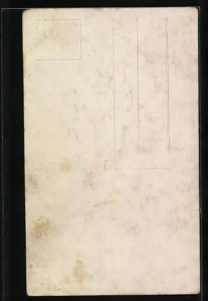 Personenbezogene Daten auf der Rückseite der Karte wurden durch blauen Textmarker unkenntlich gemacht. Die blauen Stellen sind auf die Vorderseite durchgeweicht und wirken sich negativ auf das Postkartenfoto aus