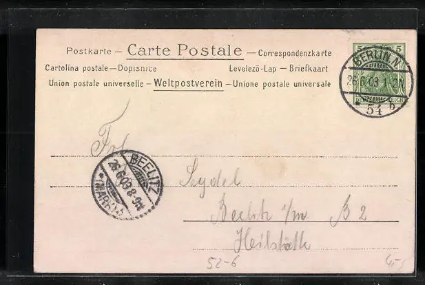 gelaufen 1903, Eckknick oben re. u. unten li., guter Zustand