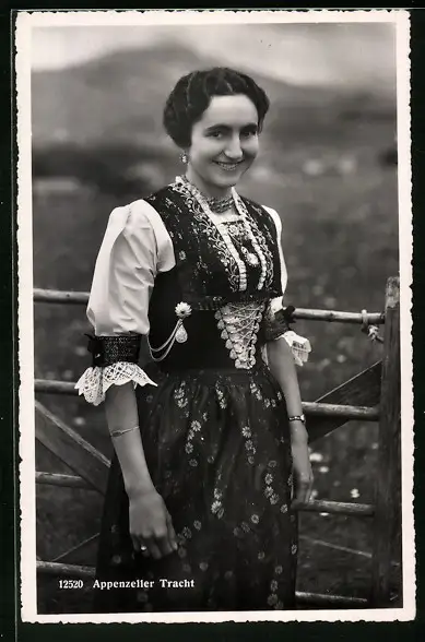 AK Lächelnde junge Frau in Appenzeller Tracht
