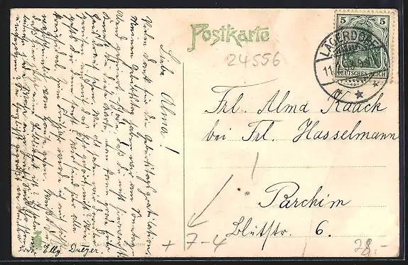 alte Ansichtskarte, gelaufen 1908, Bugspur unten, guter Zustand