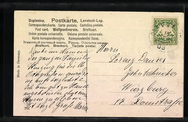 alte Ansichtskarte, gelaufen 1908, guter Zustand