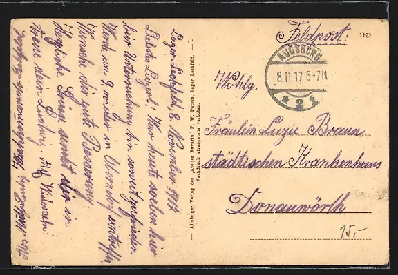 alte Ansichtskarte, gelaufen 1917, Eckknick re. unten, guter Zustand