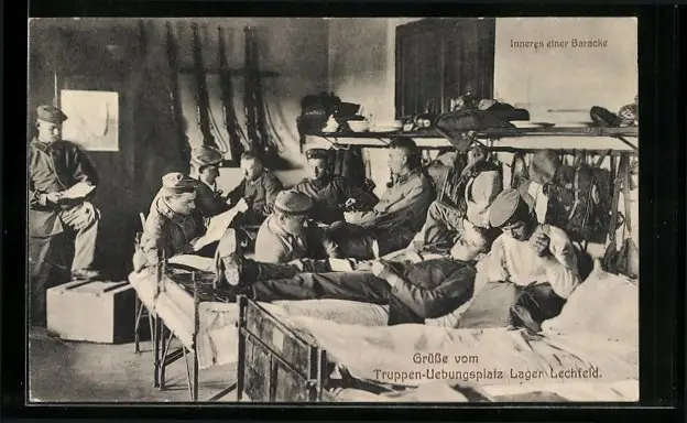 AK Lager Lechfeld, Inneres einer Baracke, Truppen-Übungsplatz