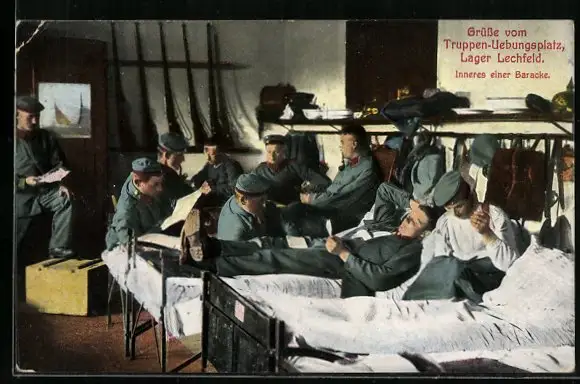 AK Lager Lechfeld, Inneres einer Baracke, Truppen-Übungsplatz