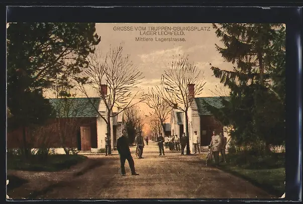 AK Lager Lechfeld, Mittlere Lagerstrasse mit Soldaten