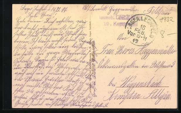 gelaufen 1917 als Feldpost, guter Zustand