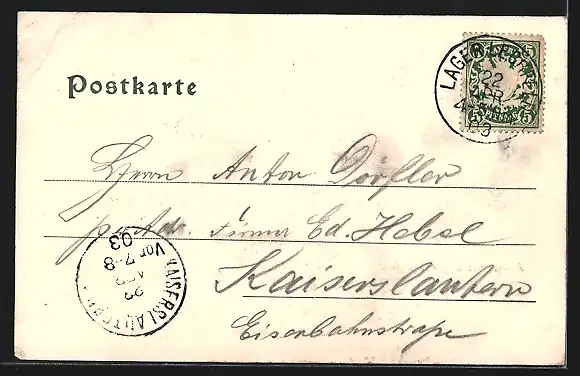 alte Ansichtskarte, gelaufen 1903, Stempelspur, guter Zustand