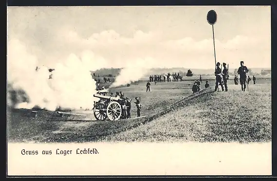 AK Lager Lechfeld, Soldaten mit Kanonen auf dem Übungsplatz