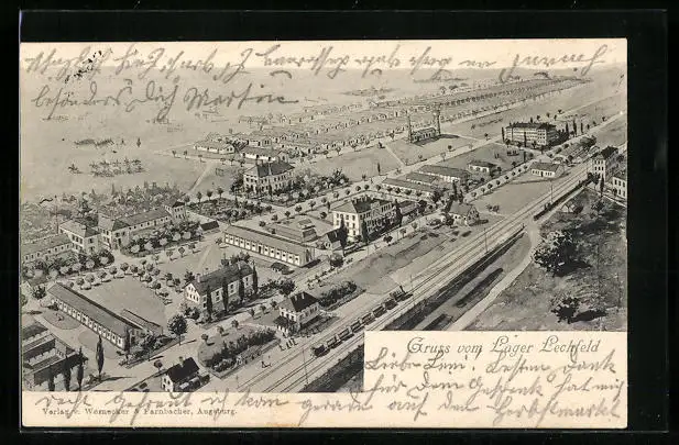 AK Lager Lechfeld, Teilansicht aus der Vogelschau
