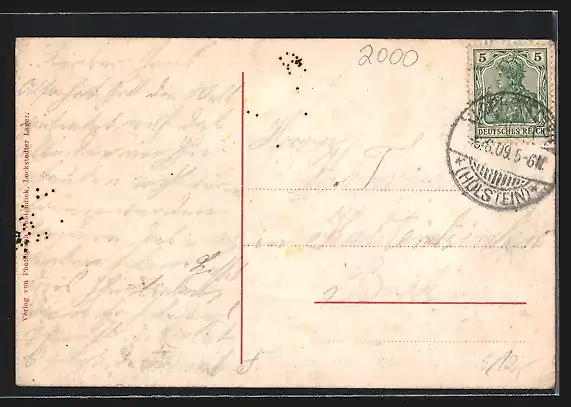 gelaufen 1909, Eckknick unten li., guter Zustand