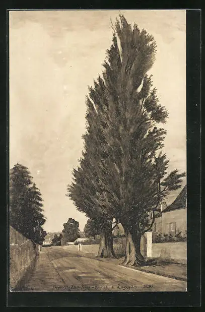 Personenbezogene Daten auf der Rückseite der Karte wurden durch blauen Textmarker unkenntlich gemacht. Die blauen Stellen sind auf die Vorderseite durchgeweicht und wirken sich negativ auf das Postkartenfoto aus