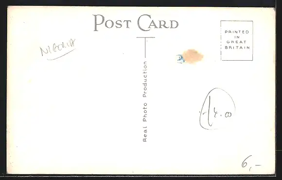 Personenbezogene Daten auf der Rückseite der Karte wurden durch blauen Textmarker unkenntlich gemacht. Die blauen Stellen sind auf die Vorderseite durchgeweicht und wirken sich negativ auf das Postkartenfoto aus