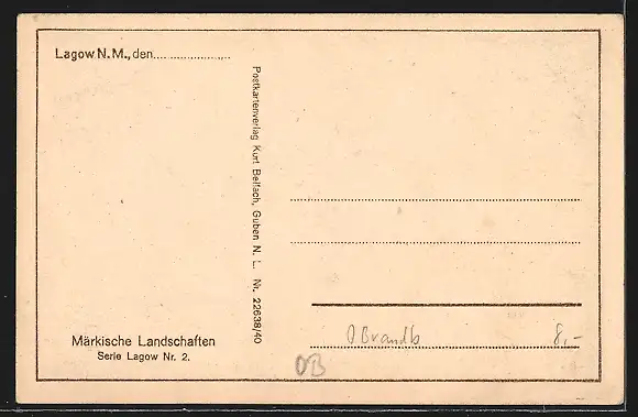 Personenbezogene Daten auf der Rückseite der Karte wurden durch blauen Textmarker unkenntlich gemacht. Die blauen Stellen sind auf die Vorderseite durchgeweicht und wirken sich negativ auf das Postkartenfoto aus