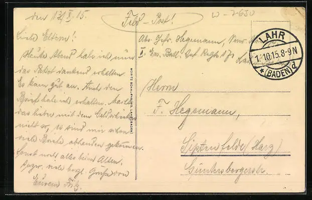 alte Ansichtskarte, gelaufen 1915, Eckknick u. Bugspuren li. oben, guter Zustand