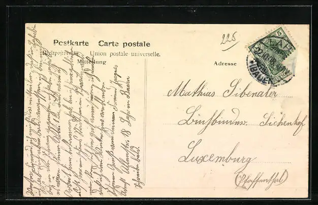 alte Ansichtskarte, gelaufen 1908, Stempelspur, guter Zustand