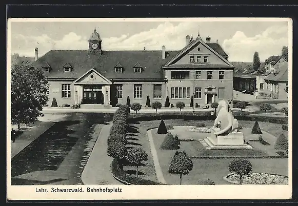 AK Lahr / Schwarzwald, Bahnhofsplatz mit Denkmal
