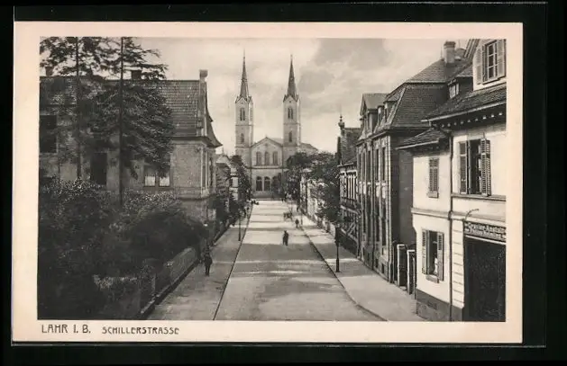 AK Lahr i. B., Blick in die Schillerstrasse mit Kapelle