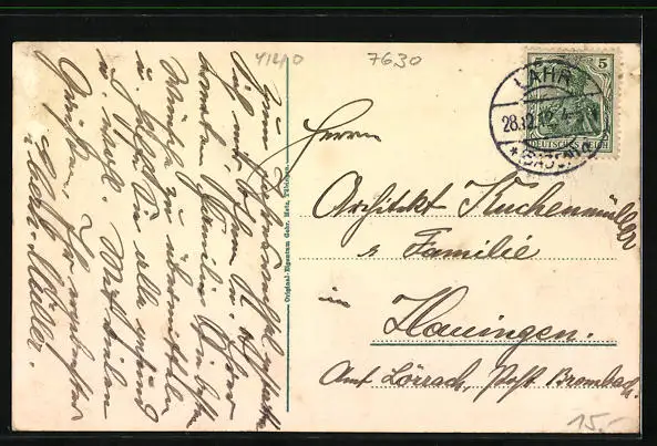 gelaufen 1912, Eckknicke rechts, guter Zustand