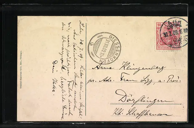 alte Ansichtskarte, gelaufen 1909, Stempelspur, guter Zustand