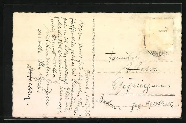 alte Ansichtskarte, gelaufen 1935, Briefmarke entfernt, rückseitig Oberflächenschaden, Bugspuren re. unten u. mittig, guter Zustand