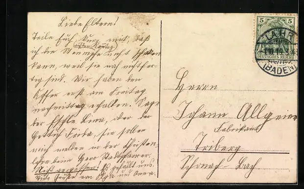 alte Ansichtskarte, gelaufen 1910, guter Zustand