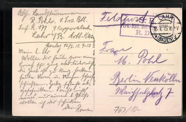 alte Ansichtskarte, gelaufen als Feldpost 1915, guter Zustand