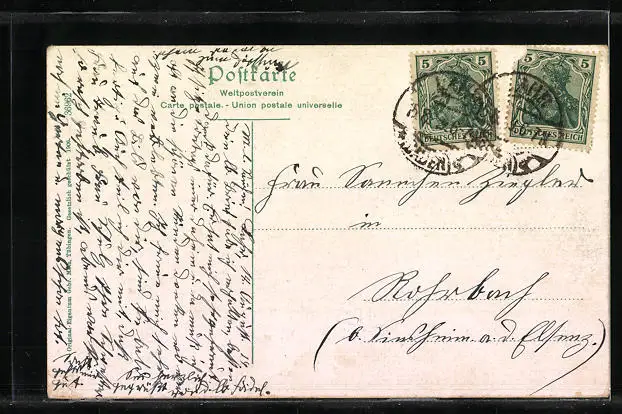 gelaufen 1914, Eckknick unten re., Ecken bestoßen, guter Zustand