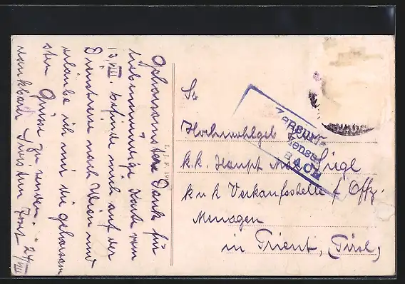 alte Ansichtskarte, gelaufen, Briefmarke entfernt, rückseitig Oberflächenschaden, guter Zustand