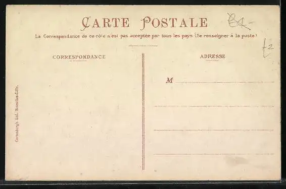 Personenbezogene Daten auf der Rückseite der Karte wurden durch blauen Textmarker unkenntlich gemacht. Die blauen Stellen sind auf die Vorderseite durchgeweicht und wirken sich negativ auf das Postkartenfoto aus