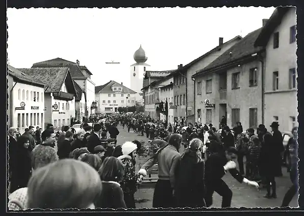 AK Lam, Strassenpartie mit Geschäften an Fasching 1966