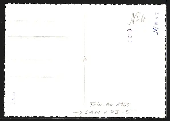 Personenbezogene Daten auf der Rückseite der Karte wurden durch blauen Textmarker unkenntlich gemacht. Die blauen Stellen sind auf die Vorderseite durchgeweicht und wirken sich negativ auf das Postkartenfoto aus