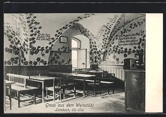 AK Lambach /Ob.-Öst., Restaurant Weinstübl, Innenansicht